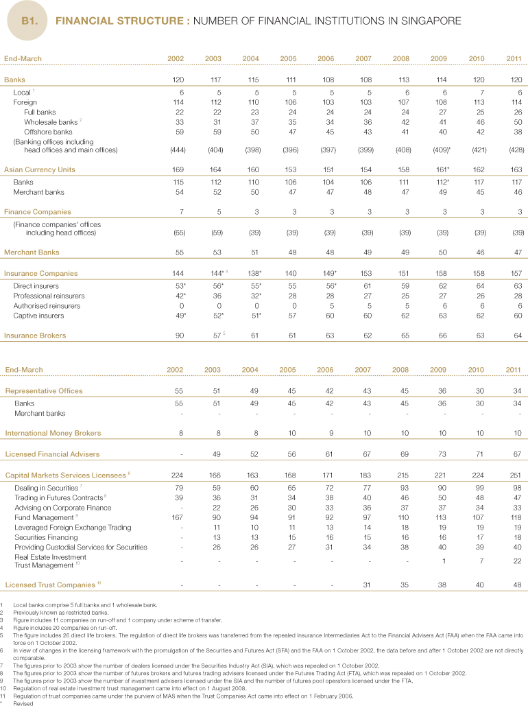 B1. Number of Financial Institutions in Singapore